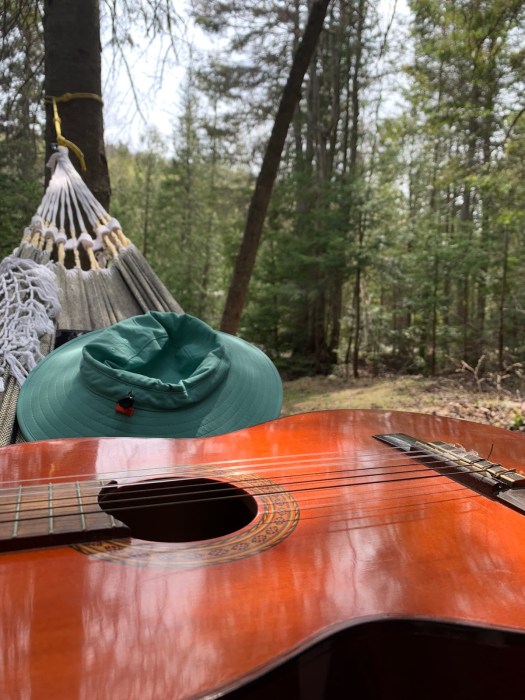 Brie a sorti sa guitare et je me suis étendu près d’elle. Au son des notes fines, du vent doux dans les branches, des petites pattes de Poutine qui froissaient le sol et du battement frénétique des ailes du colibri.