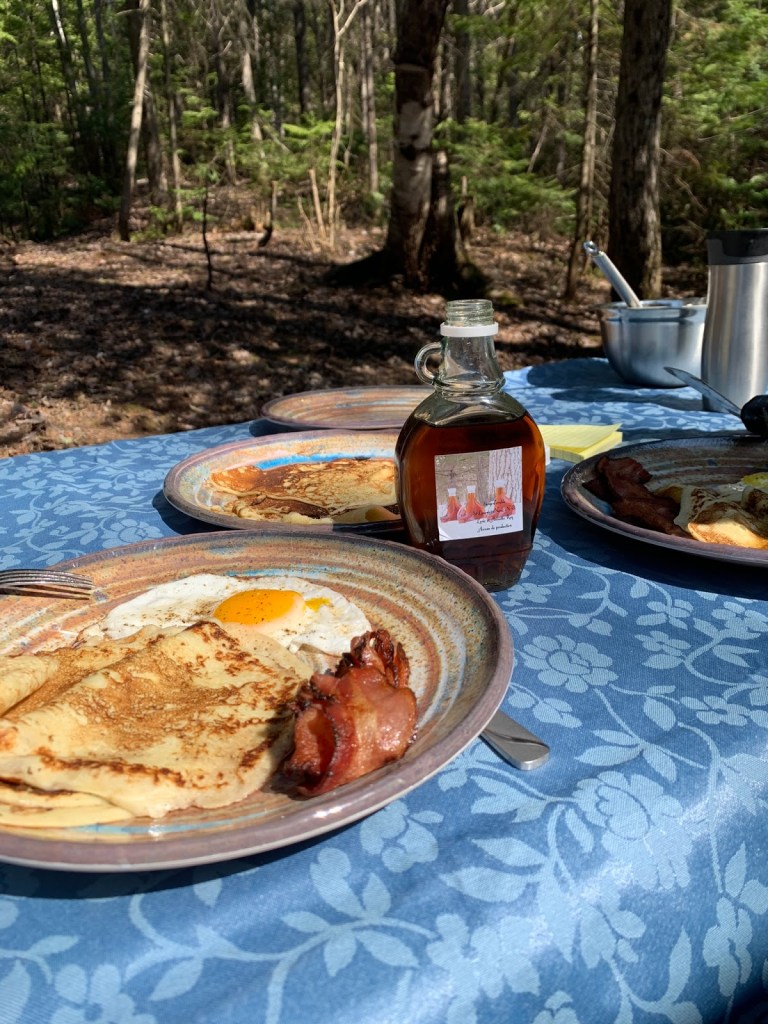 On s’est trouvé un super mignon terrain de camping au parc Sugar Loaf, on a mis la nappe sur la table de pique-nique et on a accroché les hamacs, sous les arbres, les sapins, les cèdres, leurs odeurs et leurs bruissements.
