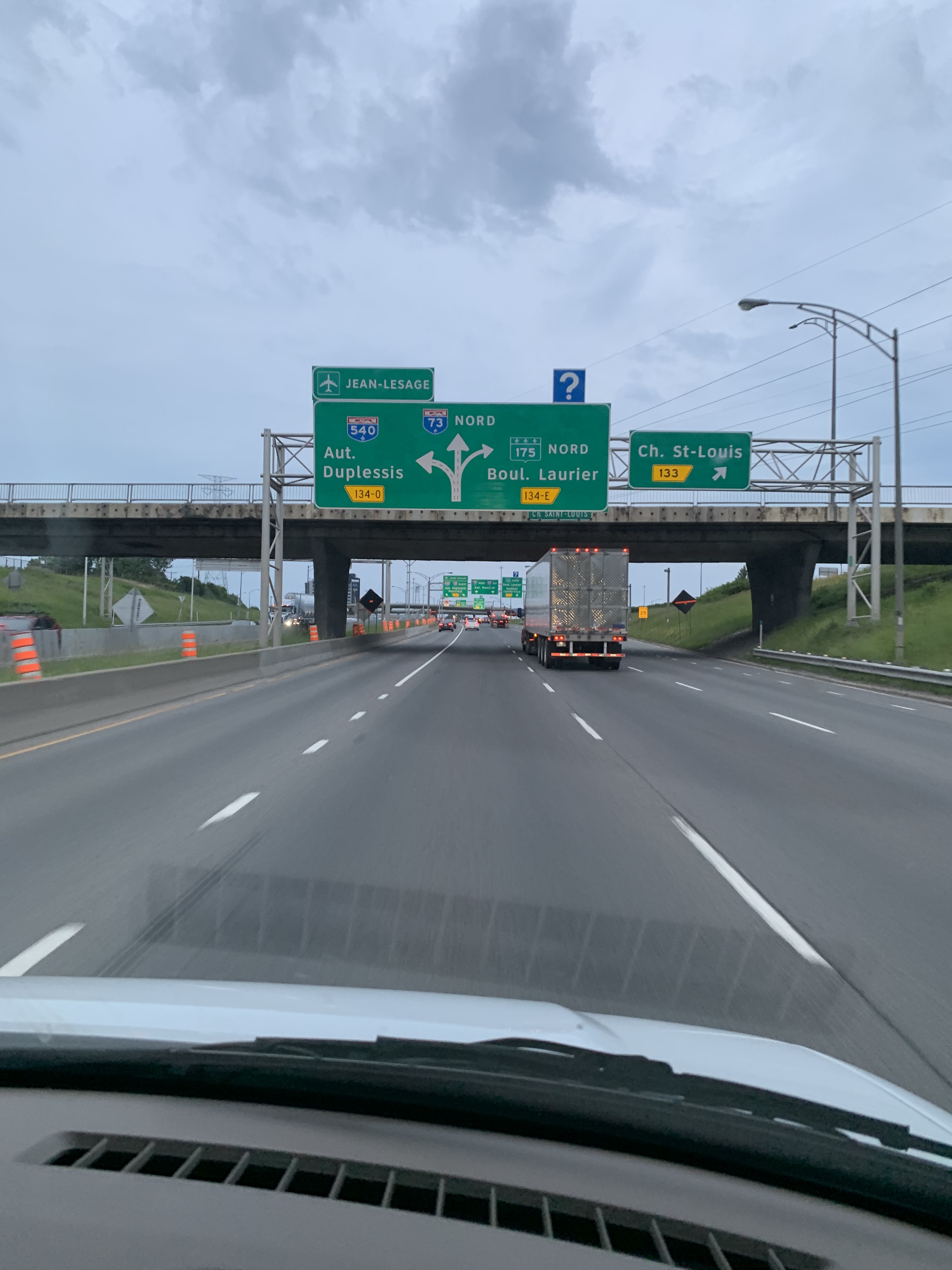 Nous traversons les Appalaches, le Témiscouata et l’Est du Québec sans embûches, même si le poulet du restaurant Normandin de St-Jean-Port-Joli ressemblait davantage à du poulet bouillie qu’à un bon poulet rôti… et froid en plus. Lors de cette pause ravitaillement, on était loin de nous douter de ce qui nous attendait une fois traversés le pont Pierre-Laporte…