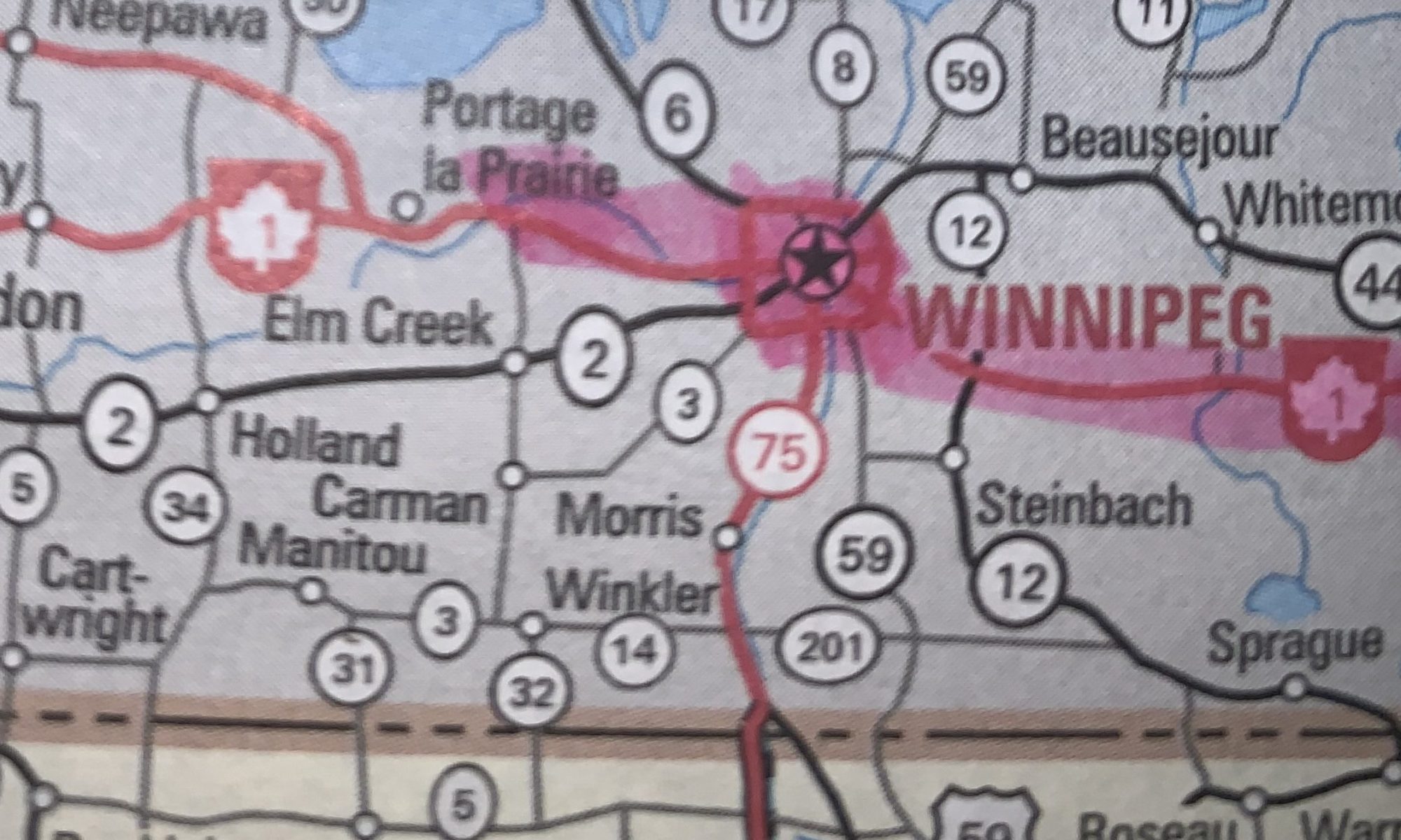Partis tôt le matin de West Hawk Lake où nous avions passé la nuit, nous avions prévu arrêter à Winnipeg pour se payer la visite des sites touristiques parmi les plus primés de la Ville où les nuits sont longues, comme s’égosillait Pierre Lalonde à le chanter… Située au confluent des rivières Rouge et Assiniboine, qu’on appelle The Forks (La Fourche), les Cris nommaient la région “Eaux troubles”, win (boueux) nepee (eau).