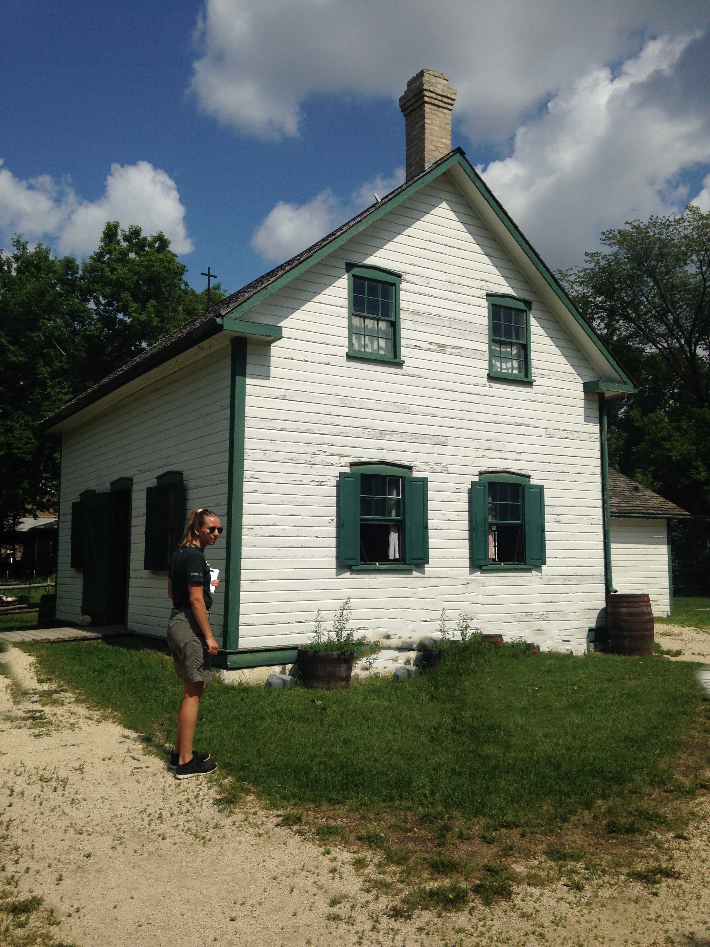 C’est ainsi que nous nous sommes présentés à la Maison Louis-Riel, à l’entrée de la ville, une vieille maison bois sur bois blanchie à la chaux, érigée discrètement entre des arbres, une maison dans laquelle le Métis n’a jamais habité, mais dans laquelle son corps a été exposé après son exécution.