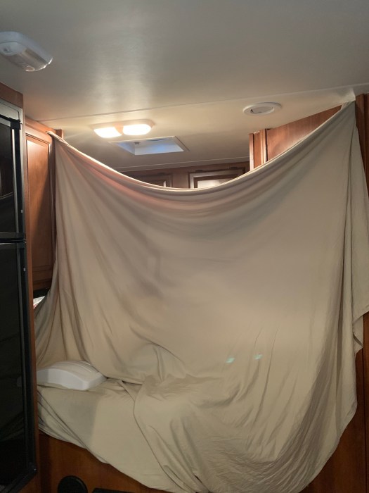 En passant, nous avons expérimenté la météo changeante des Prairies, quand une averse aussi puissante que soudaine nous a surpris pendant que nous finissions notre lessive… malheureusement nos trappes d’aération au plafond du Mott étaient grandes ouvertes… on vous laisse imaginer la suite!