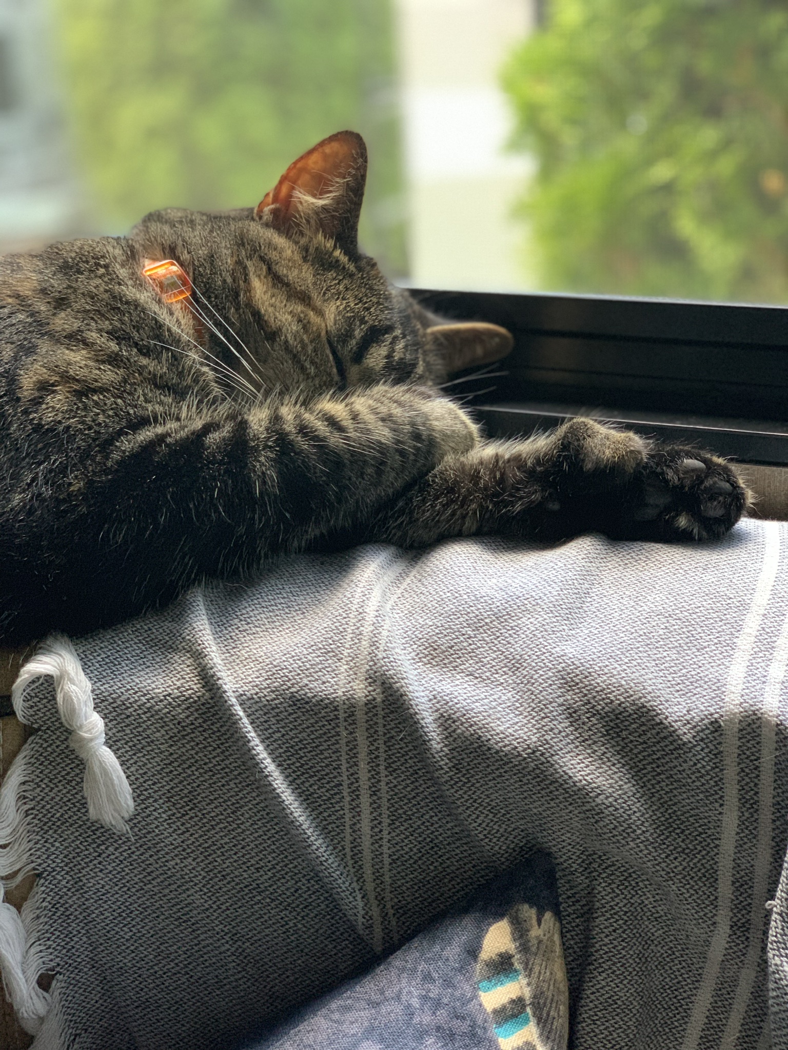 On avait installé le Mott sur une butte en haut du chemin et Poutine nous attendait comme une grande. On a passé la nuit là, dans la paix bruyante d’une grande averse estivale que Poutine n’a jamais entendu tellement elle ronflait.