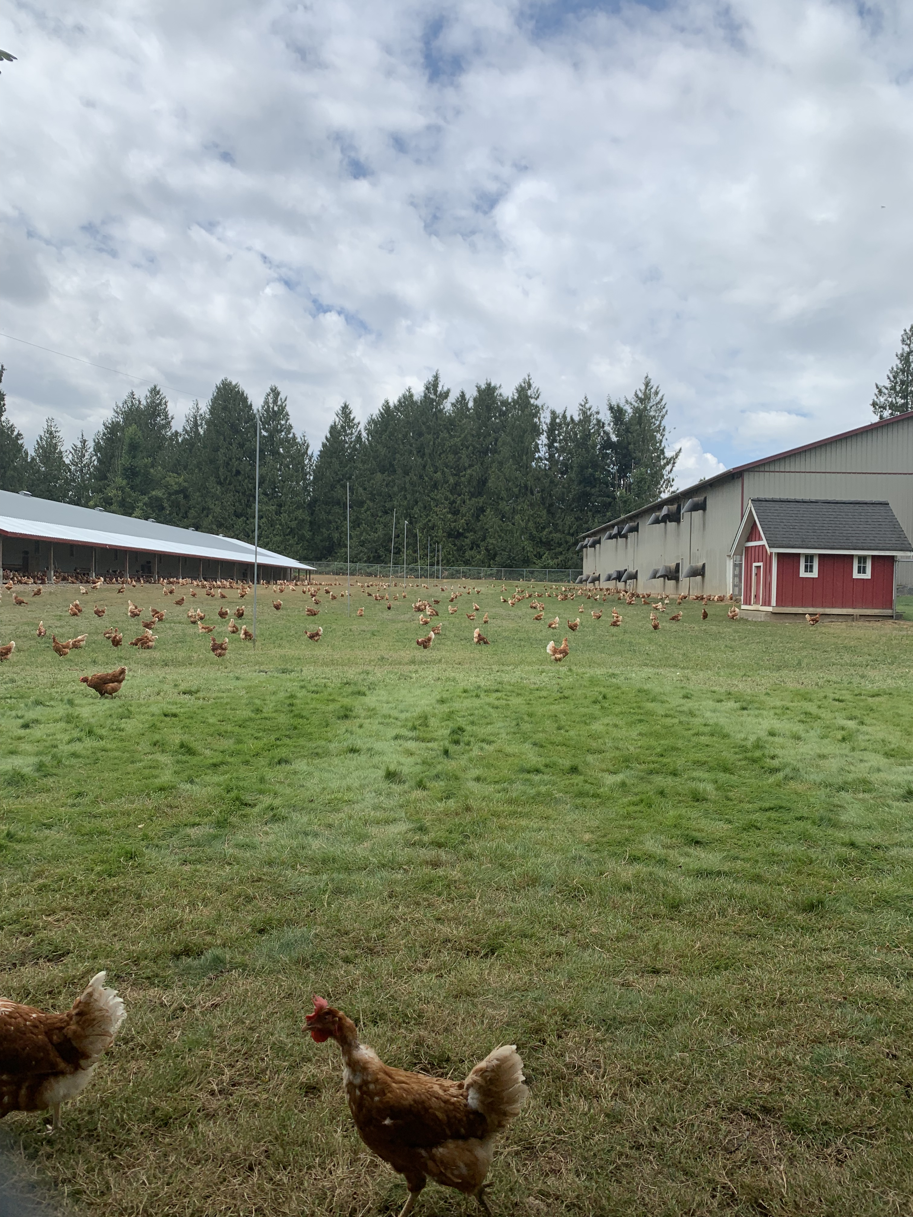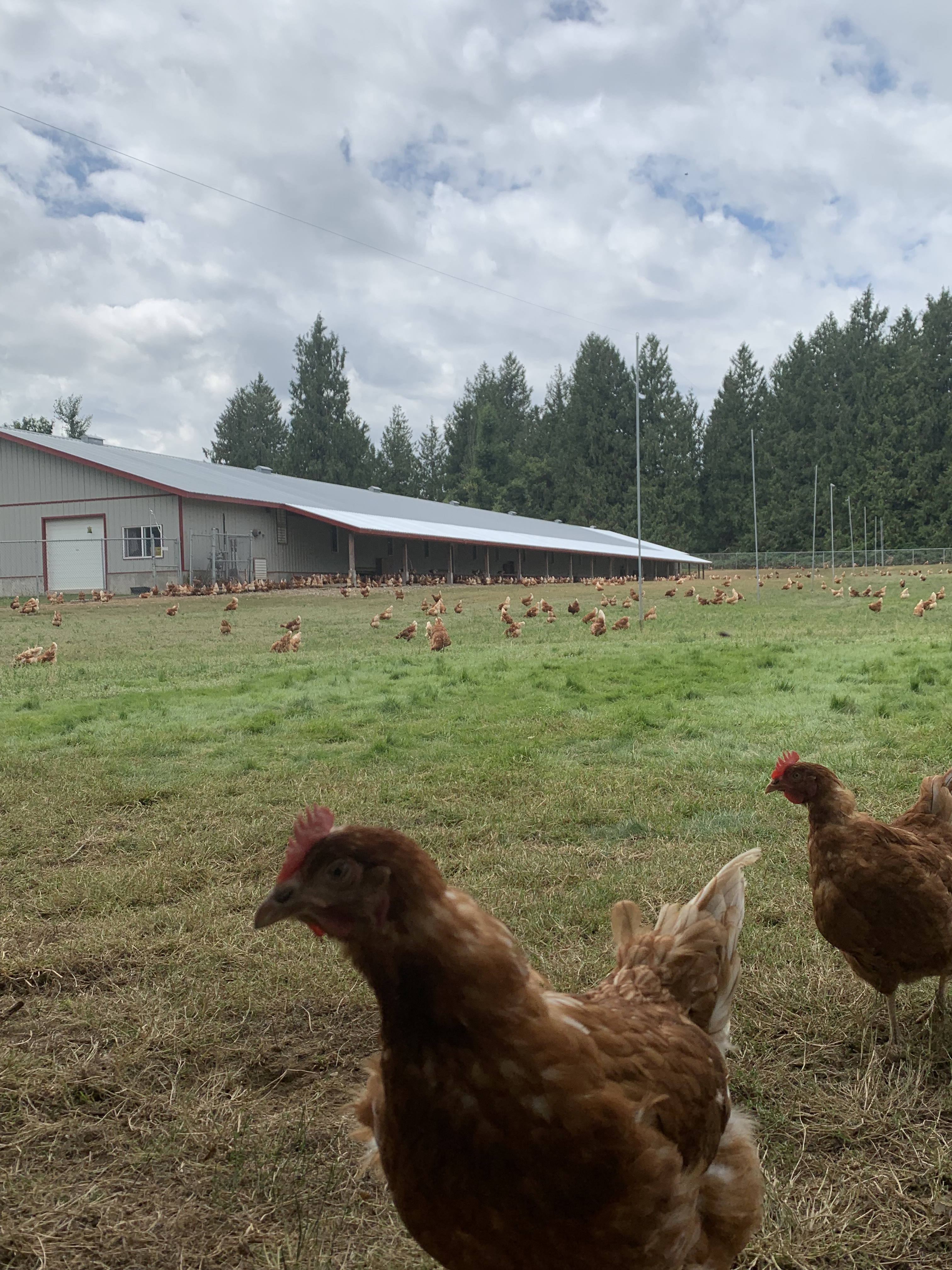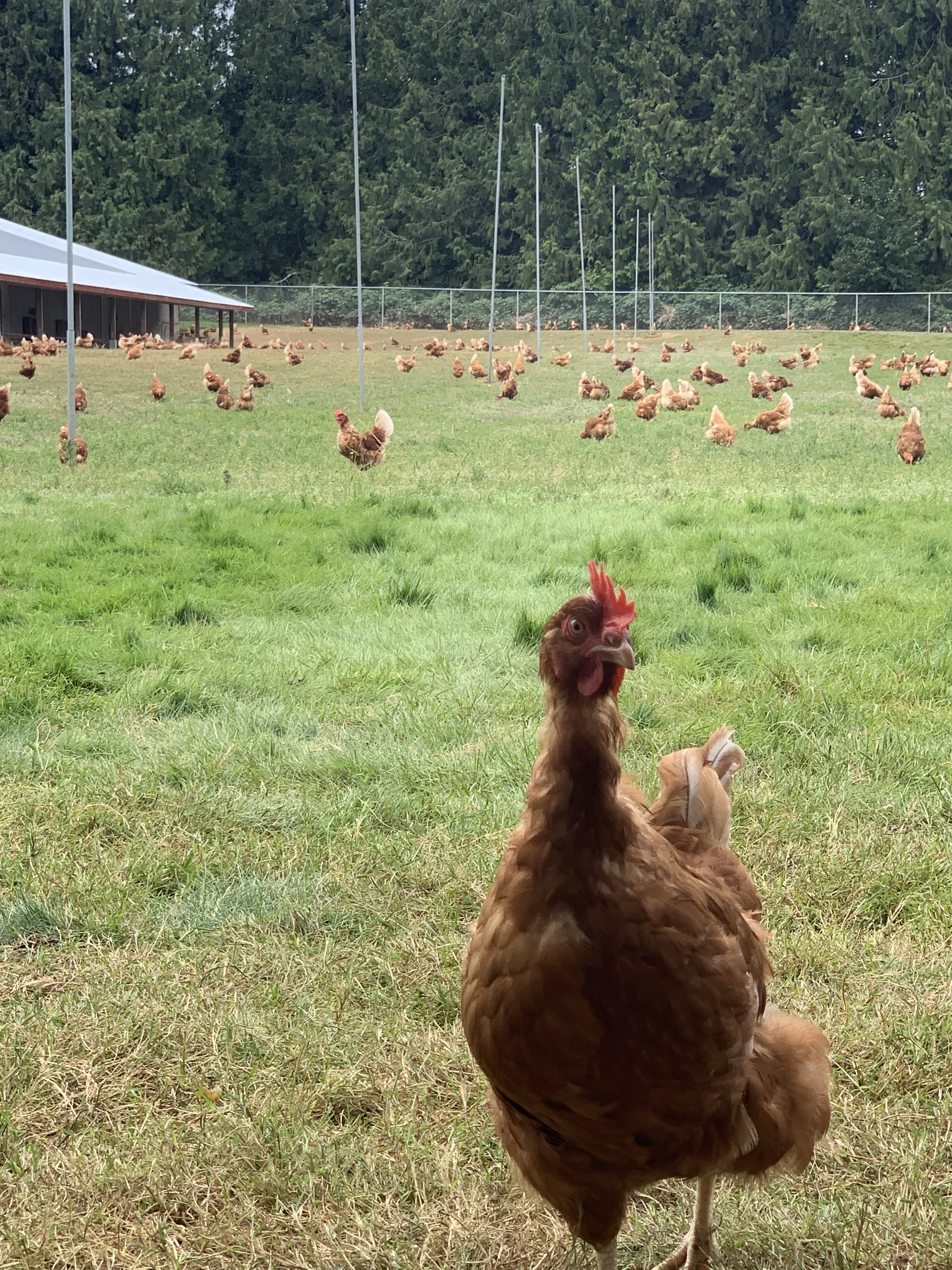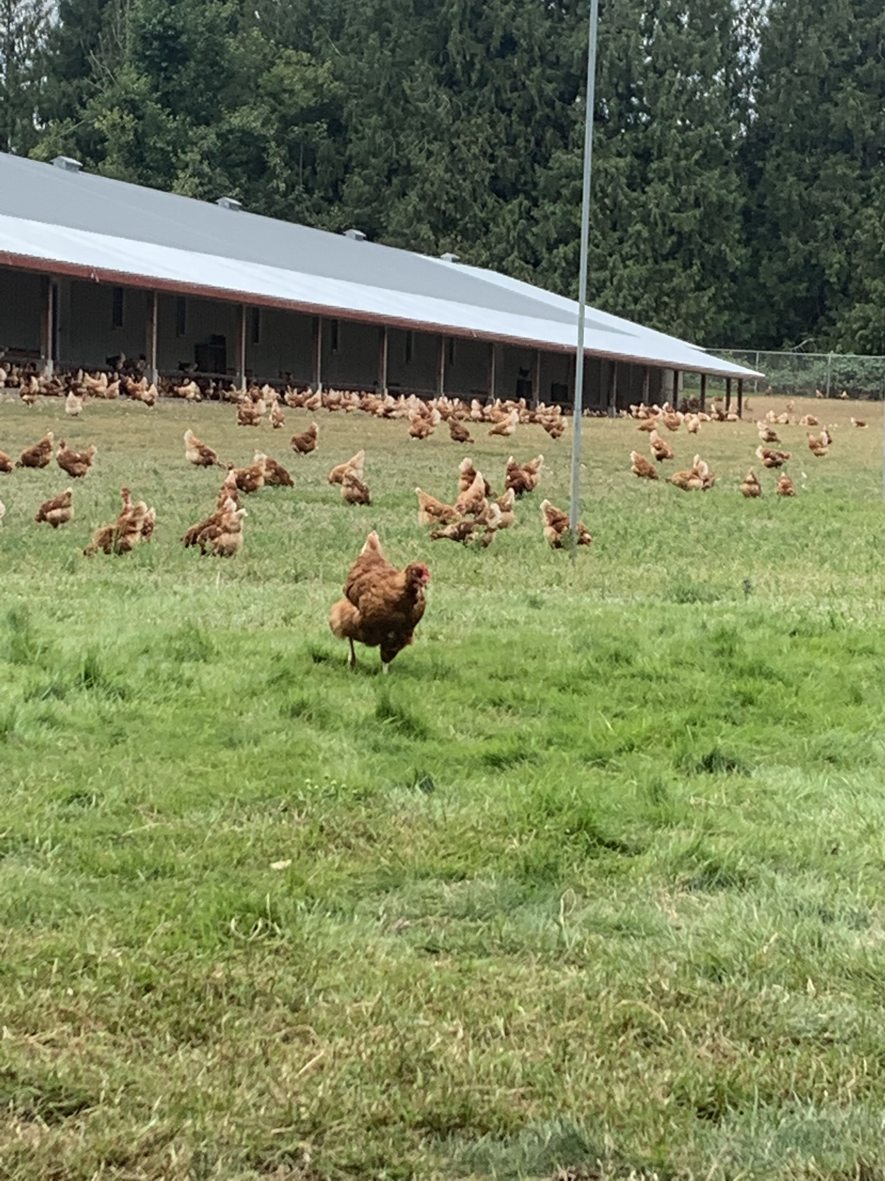 En passant, on vous a parlé des poules d’André? Il nous dit qu’elles sont carnivores ! En tout cas, il leur donne de la viande et paraît qu’elles en raffolent ! Tout citadin que nous sommes, on n’avait jamais entendu parler de ça… et ça nous a rappelé une ferme d’élevage de poules devant laquelle nous avons passé lors de notre visite de la région agricole du Bas Fraser. Des centaines de poules en liberté qui caquetaient en mangeant tout ce qui leur tombait sous le bec. On s’est dit en rigolant et en sachant maintenant que les poules peuvent être carnivores, qu’il ne ferait pas bien bon de tomber dans leur enclos… Le colonel Sanders à l’envers! Hihihi.