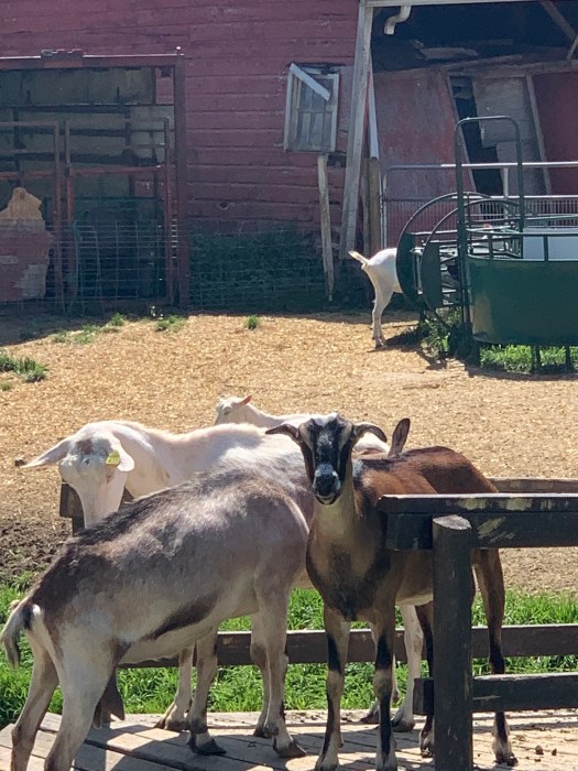 Des chèvres rencontrées dans une fromagerie que nous avons visitée dans la vallée du Fraser