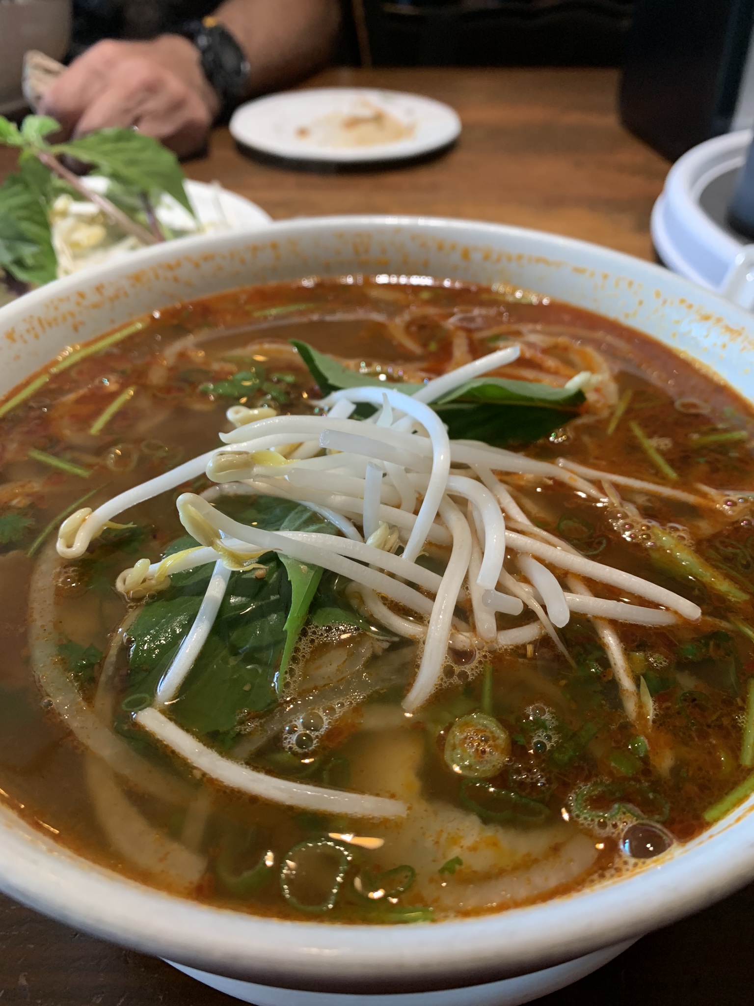 Nous avons repris le même phô avec tendons et tripes servis sur des nouilles dans un bouillon brûlant et épicé. C’est vrai que ce n’est pas pour tout le monde, mais c’est un régal impossible à reproduire ailleurs.