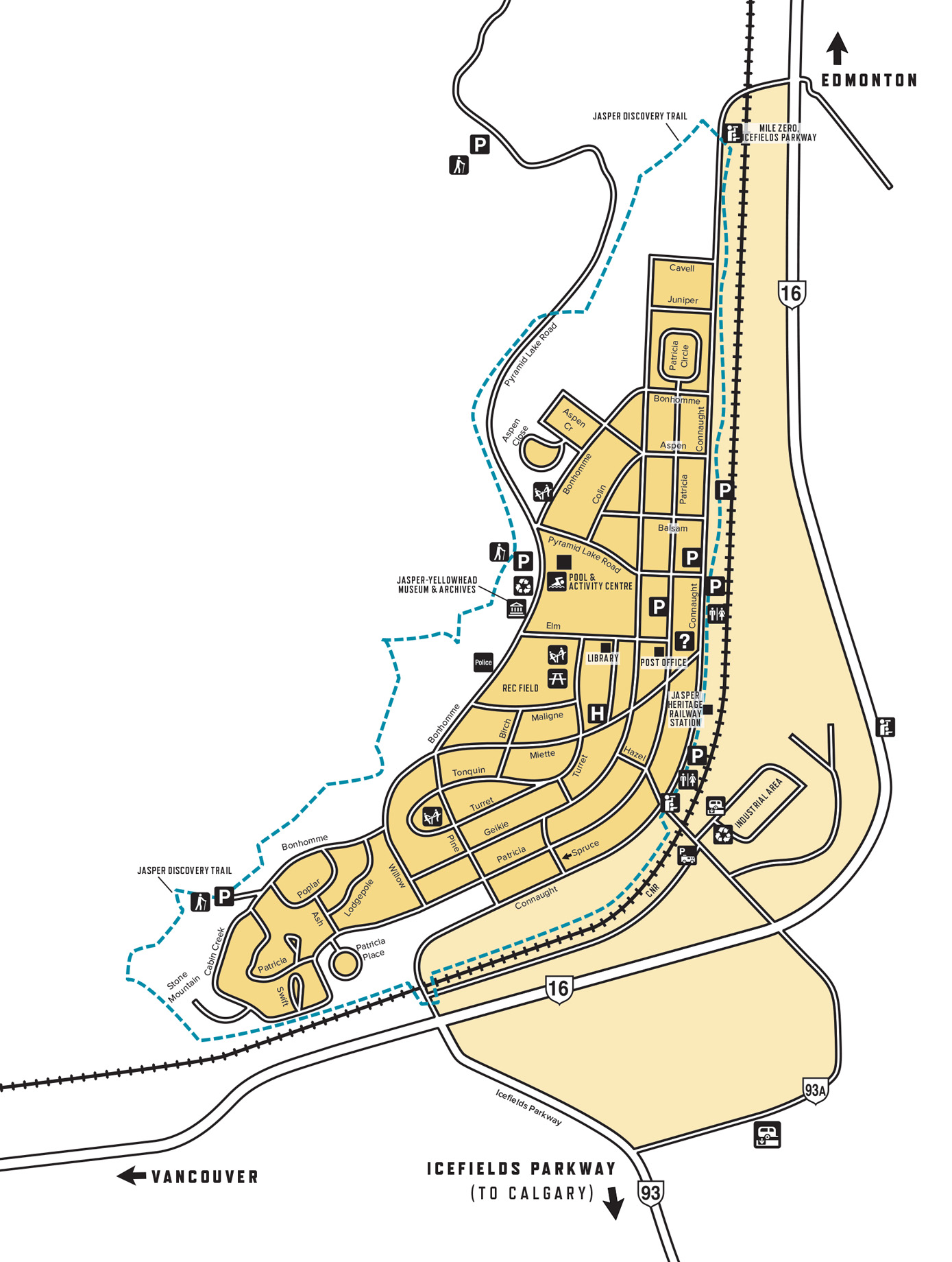 Jasper est dominée par les trains depuis 1911. Pas seulement les trains, bien entendu : il y a aussi les montagnes majestueuses qui la ceinturent, des rivières et des lacs émeraude, mais tout ça ne fait pratiquement pas de bruit… alors que les trains! Toutes les 5 minutes il y en a un qui prend au moins 20 minutes à passer.