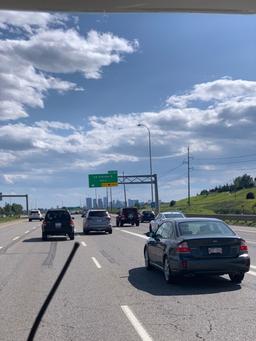 Puis, on est arrivés dans le contrefort des Rocheuses, cet endroit avant les prairies où les montagnes continuent de s’étendre un peu, en s’étirant et en baillant avec encore quelques dénivellations, mais moindres, qui nous amènent tout doucement vers la grande plaine.