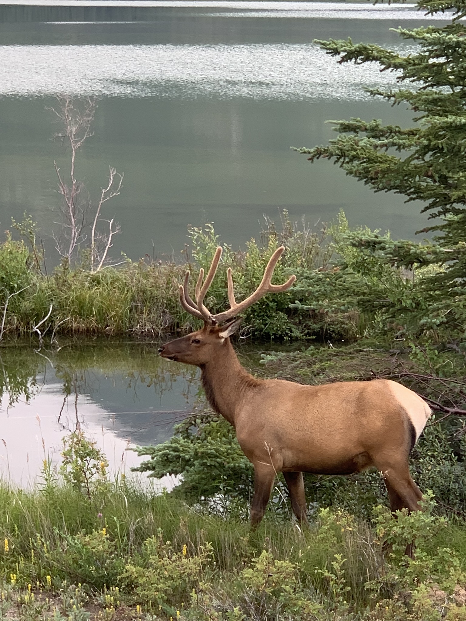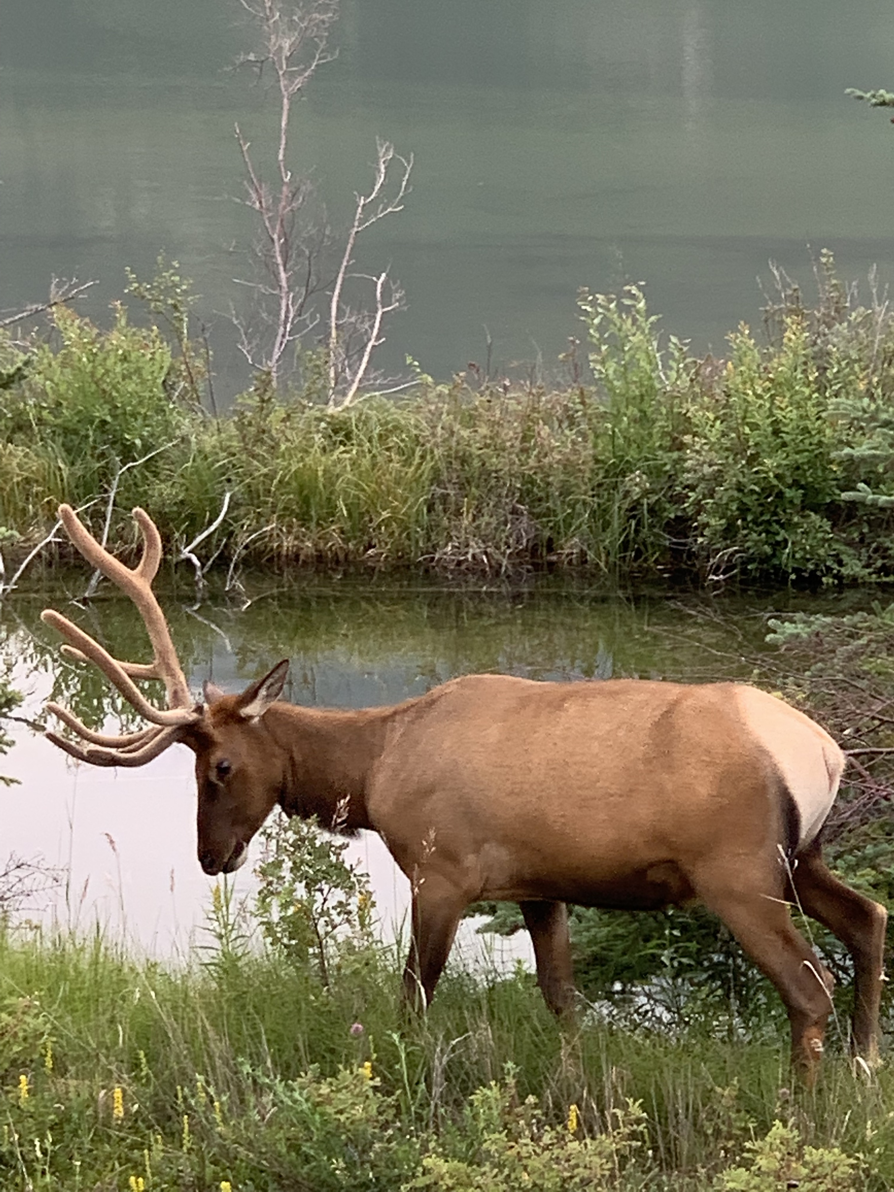 Avec la musique qui sort des restaurants à tue-tête, les autos, les gros VR (mea coule pas), les camions de livraison, les motos qui veulent se faire entendre, les autobus de touristes et les jeunes qui courent partout pour faire un selfie quelque part, y’a pus moyen de les voir et de les « entendre » les montagnes et la nature. Aussi bien rester chez soi, hé. Y’en a des trains par chez nous, mais ils sont discrets. Pis c’est pas à la porte Jasper. Tapis, Jasper!