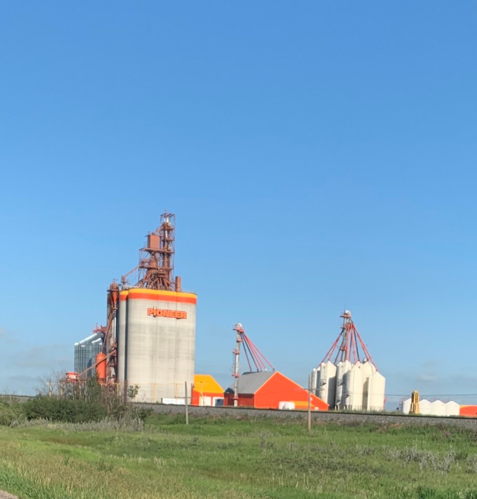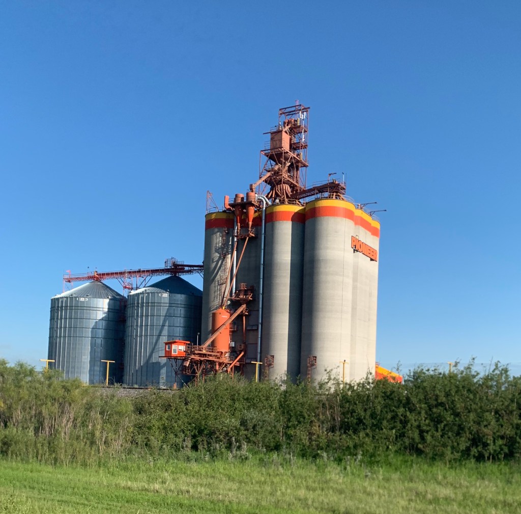 Ça en prend des silos pour engranger toutes ces futures boites de céréales et ils ne sont pas tous au loin. Il faut en construire qui attendront les trains et les camions, le long des voies et le long de la route. Des silos aussi grand que le paysage qu’on voit à l’horizon comme autant d’inukshuks annonçant un campement humain.