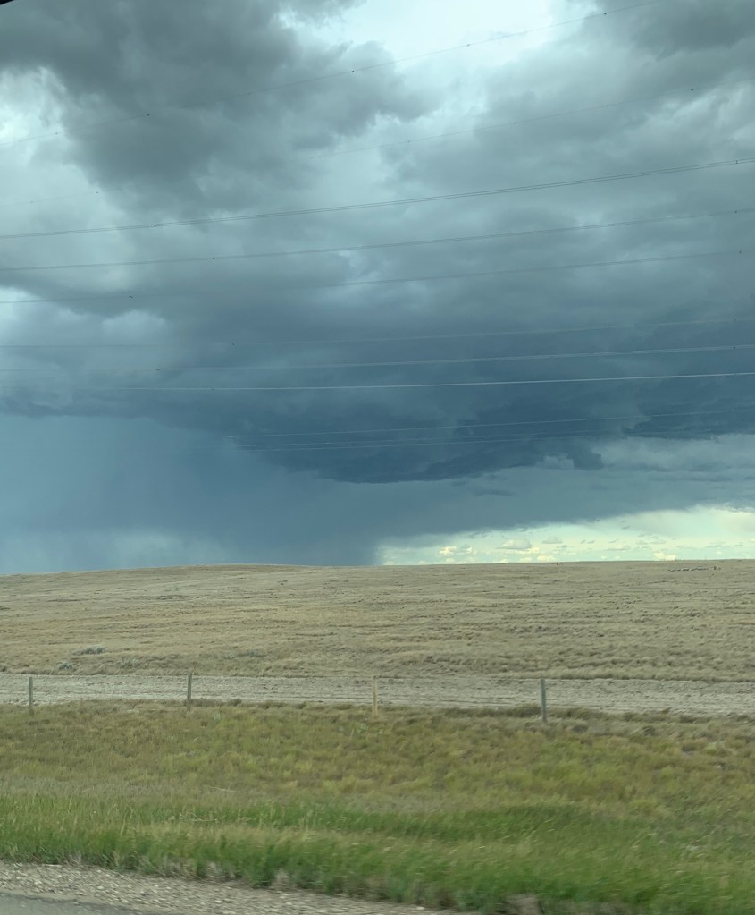 Bricot et moi, on a traversé ces mille cinq cent kilomètres des dizaines de fois, d’est en ouest et d’ouest en est, en auto, en moto, en minivan, en Mott, autant d’embarcations chahutées par le Chinook qui charrie des cumulonimbus aussi immenses que l’imagination. On peut voir venir un orage à des centaines de kilomètres, assez pour se donner le temps d’avoir peur. On peut sentir la pluie laver les champs de luzerne cinquante kilomètres avant d’être mouillé. C’est hallucinant la plaine.