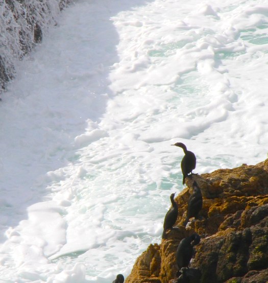 Un oiseau marin pas plus gros qu’un petit poulet, noir et blanc avec de toutes petites ailes, s’était accroché à mon dernier hameçon. Le pauvre était probablement en chasse sous l’eau au moment où j’ai lancé ma ligne vers le large et il aura suivi le malheureux maquereau qui filait vers mes appâts. En espérant le happer, il aura été emporté par mon coup sec sur la ligne.