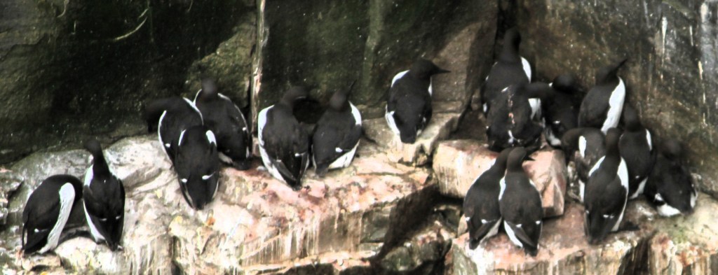 Chaque fois, Pé me répondais que non. J’avais presque perdu tout espoir quand j’ai déniché dans ma banque de photos le plus beau petit oiseau qui semblait être vêtu d’un tuxedo… le guillemot marmette. Lors d’un voyage d’un jour à l’île Bonaventure, j’avais eu le bonheur de croquer sa binette sans me lasser des dizaines de fois.